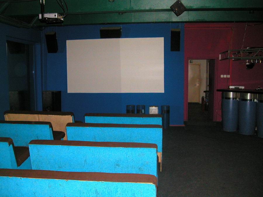 Экран 2 х 3 метра, мощный звук, удобные диваны, бар.
